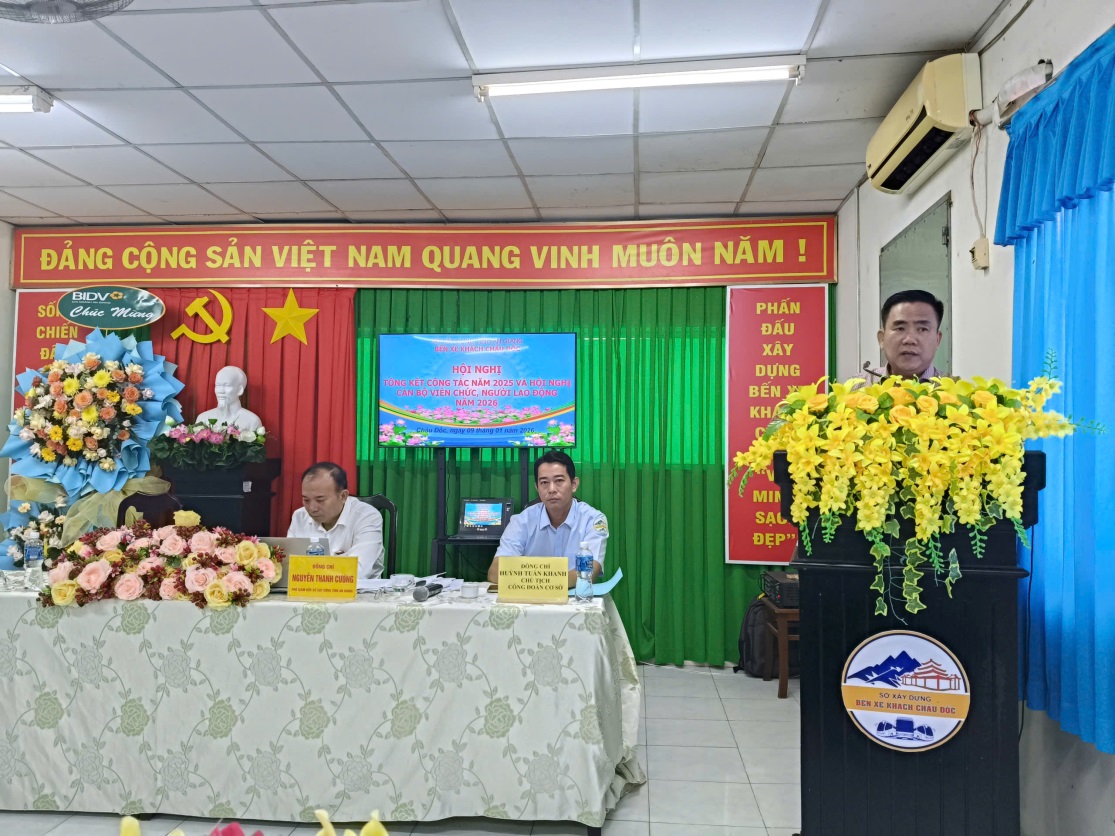 Hội nghị đã nghe báo cáo tổng kết năm 2025 và phương hướng nhiệm vụ năm 2026; đồng thời thảo luận, đóng góp nhiều ý kiến thiết thực, tập trung vào việc khắc phục khó khăn, vướng mắc, đề xuất các kiến nghị liên quan đến công tác vận tải hành khách trong thời gian tới góp phần xây dựng hình ảnh Bến xe khách Châu Đốc văn minh, an toàn, thân thiện.