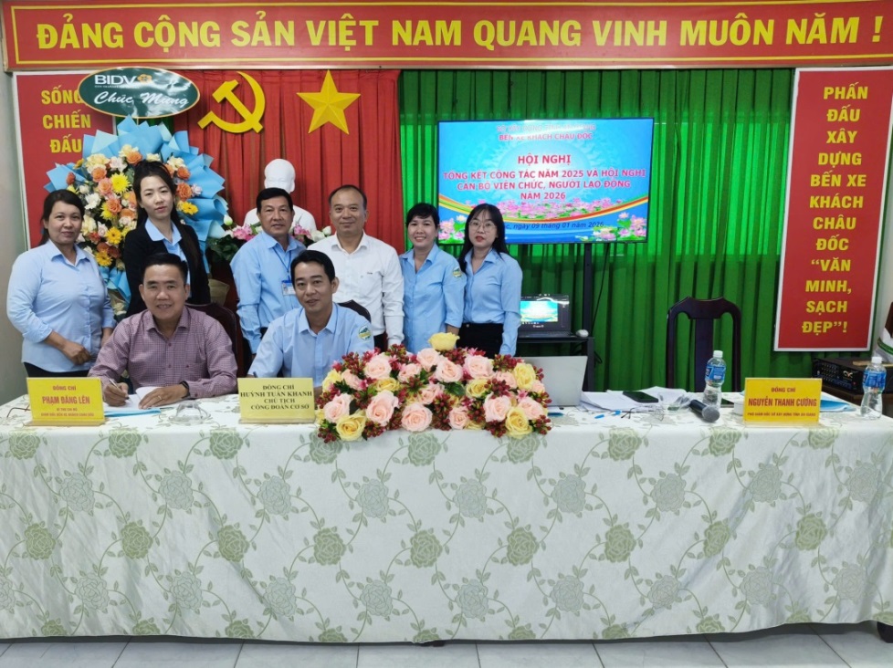 Hội nghị đã được Giám đốc Bến xe khách Châu Đốc và Chủ tịch Công đoàn cơ sở ký giao ước thi đua năm 2026.