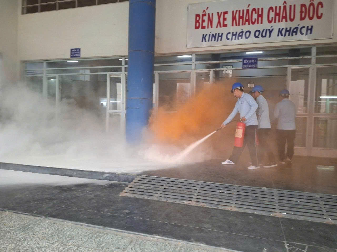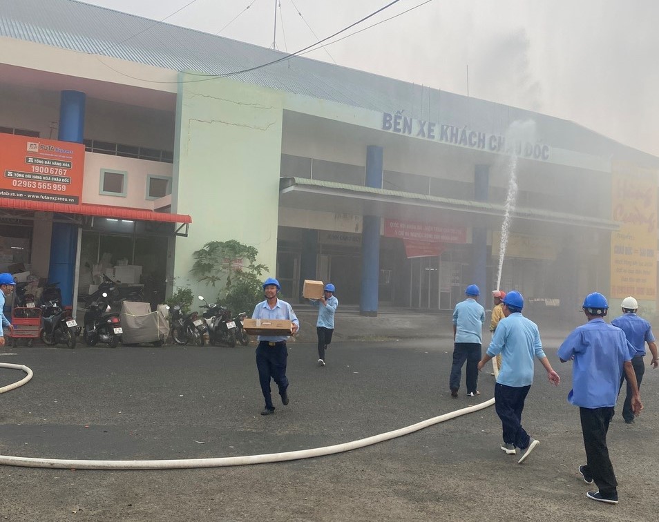 Thông qua diễn tập, lực lượng PCCC Bến xe khách Châu Đốc được rèn luyện bản lĩnh, kỹ năng xử lý tình huống, nâng cao khả năng xử lý các tình huống cháy, nổ.