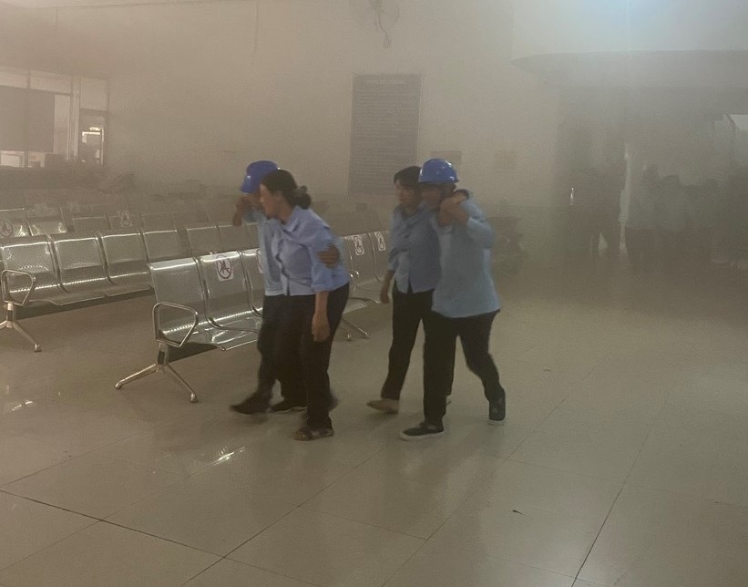 Tình huống giả định đặt ra: Tại khu vực nhà điều hành trung tâm xảy ra sự cố cháy, nguyên nhân ban đầu được xác định là do chập điện gây ra cháy. Đám cháy xảy ra kết hợp với sức gió mạnh, cùng nhiều vật liệu dễ cháy ngọn lửa nhanh chóng bao trùm toàn bộ khu vực và cháy lan sang khu vực xung quanh, đe dọa dọa tính mạng của cán bộ, công nhân viên và tài sản của cơ quan.